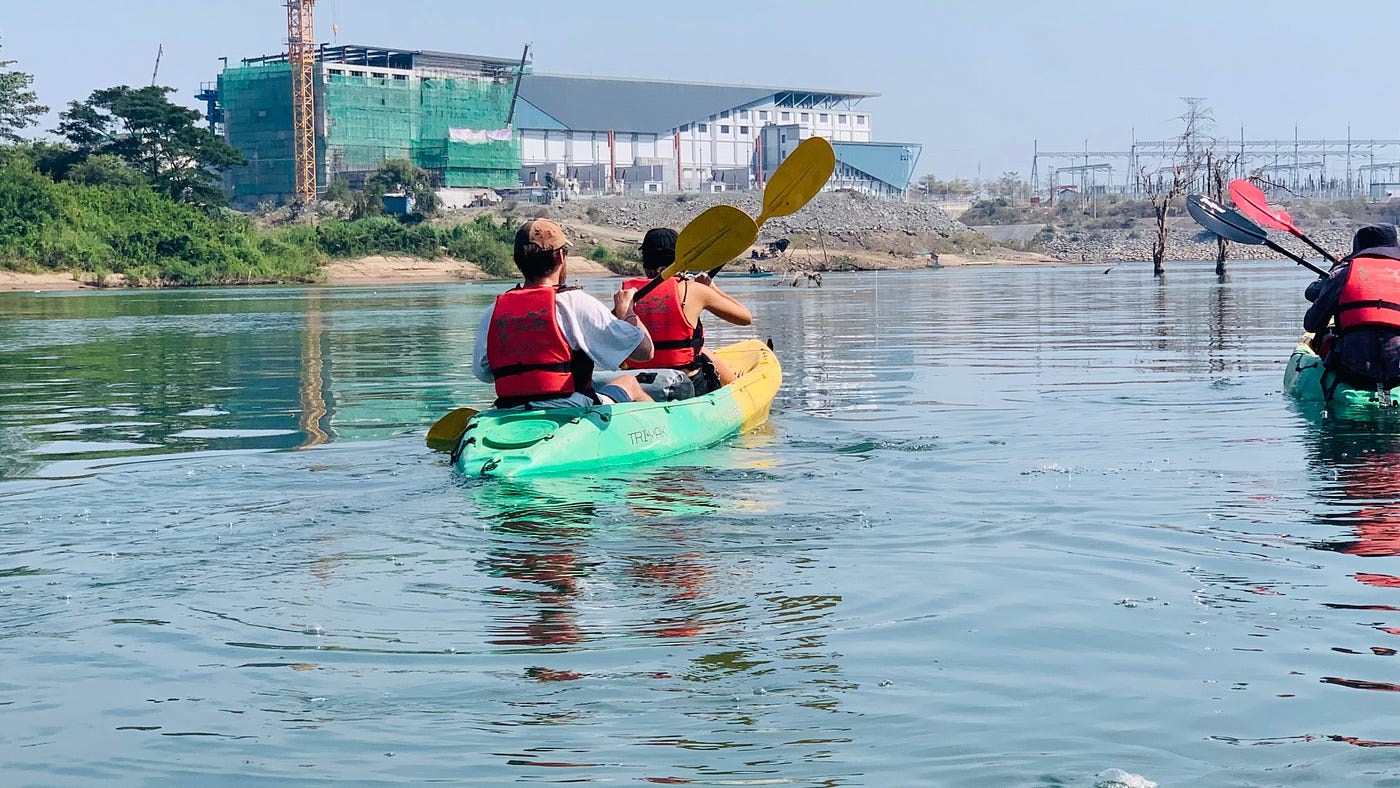 The kayaks are transported to KHONGYAI BEACH from where we get back onto the river for another ca. 1 and a half hours downstream passing between the South end of DON KHONE and CAMBODIA. About half way we take a break at Hang Khone to relax and have the possibility to learn about some colonial history of this point, before we continue for another 45 minutes to our take-out point at Veun Kham.